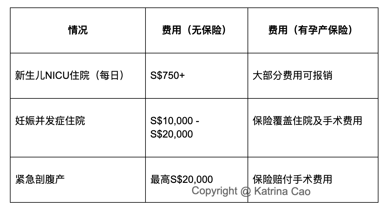 例如,妊娠糖尿病、高血压、子痫前期(preeclampsia)等问题在孕期相当常见,这些情况可能会导致住院治疗,甚至紧急剖腹产。而剖腹产的费用可高达 S$20,000,对于没有保险的家庭来说,将是一笔不小的负担。