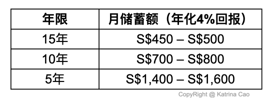 假设你希望在 15 年内准备 S$100,000 教育金: