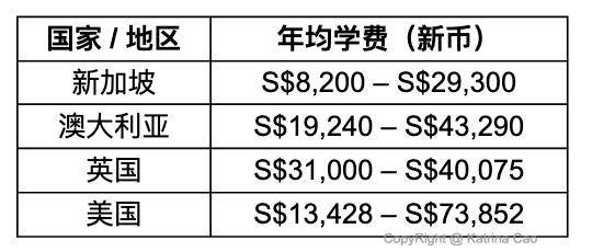 💰 目前新加坡与海外大学的学费概览